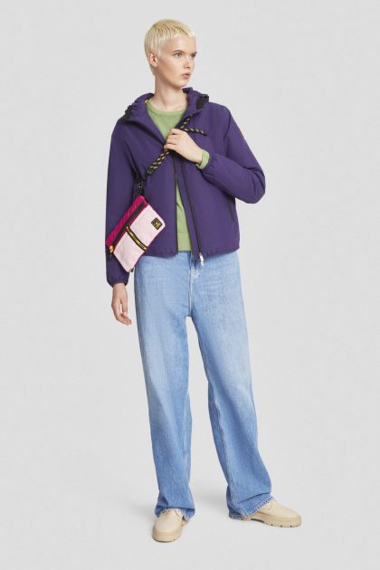 Giacca leggera blu con cappuccio in nylon