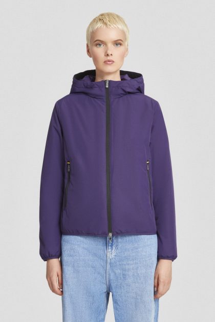 Giacca imbottita viola con cappuccio