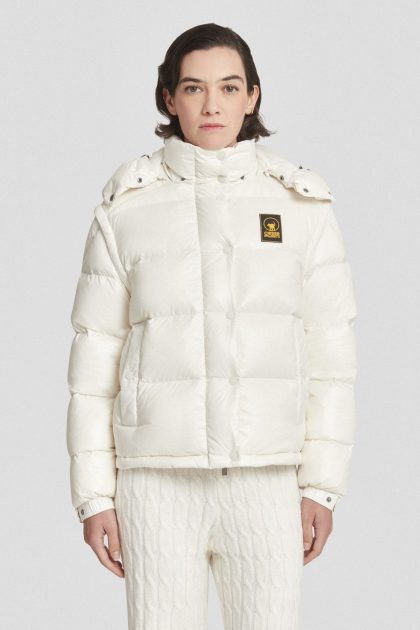 Giacca lunga bianca imbottita in softshell