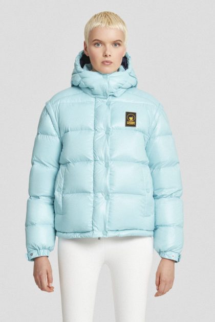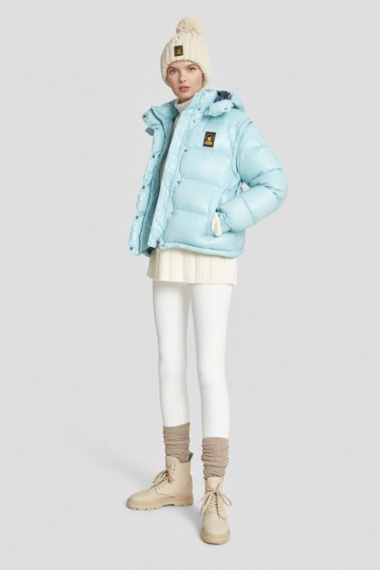 Giacca lunga blu imbottita in softshell