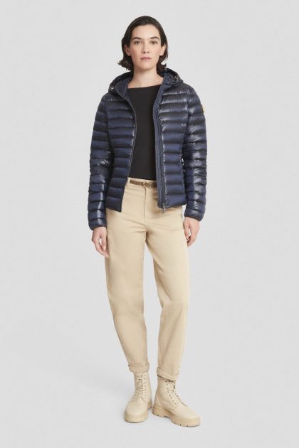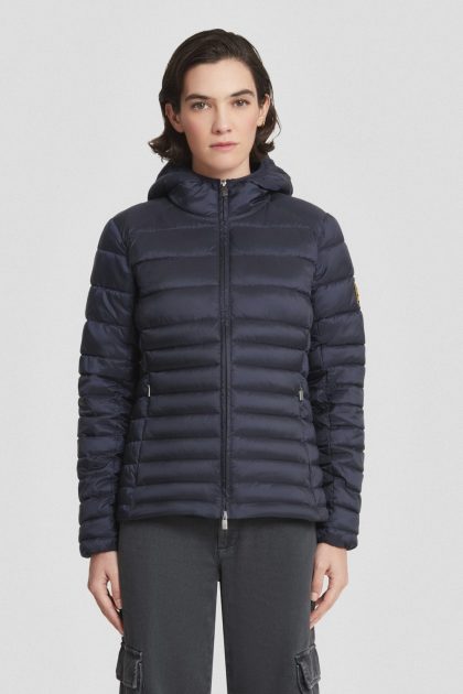 Piumino leggero blu con cappuccio
