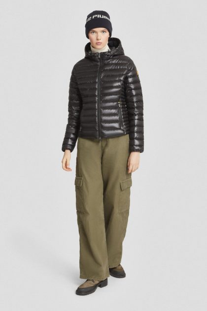 Piumino leggero nero con cappuccio