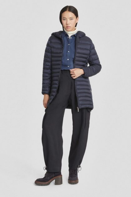 Piumino lungo blu trapuntato