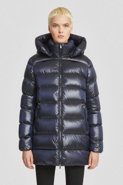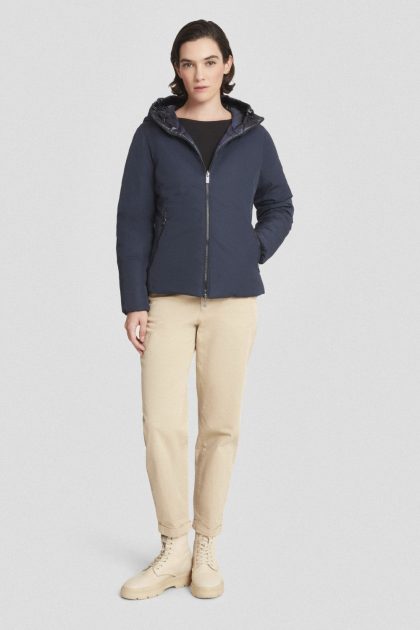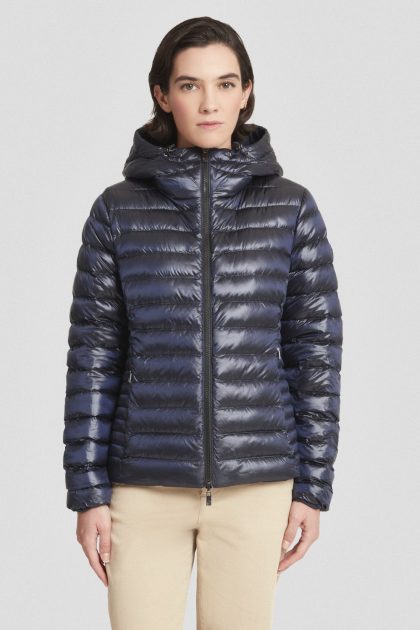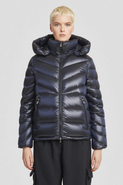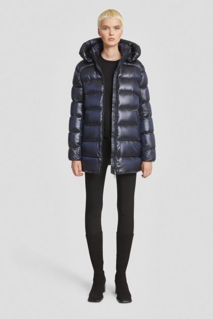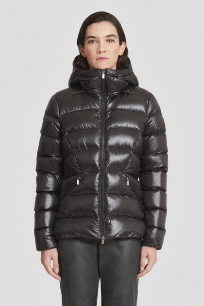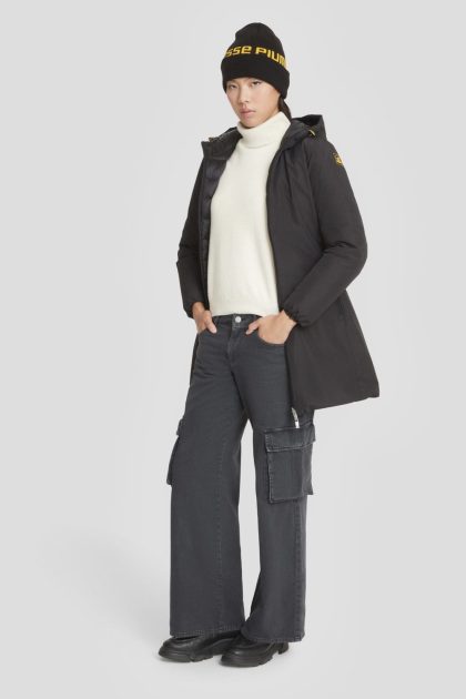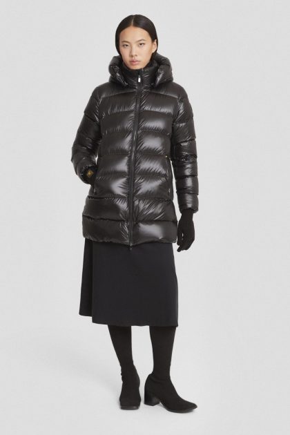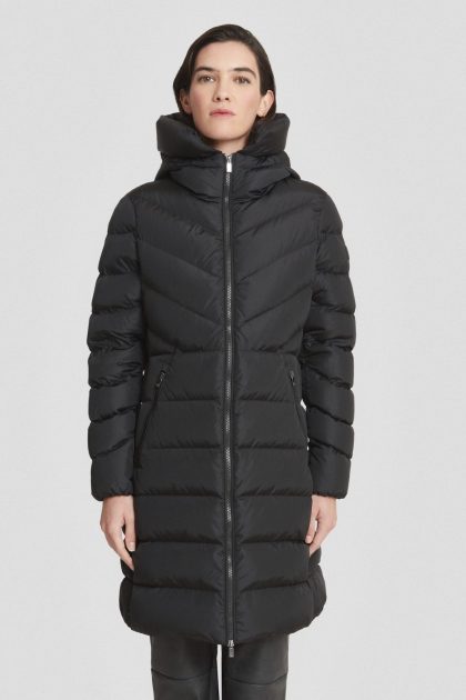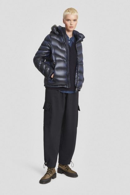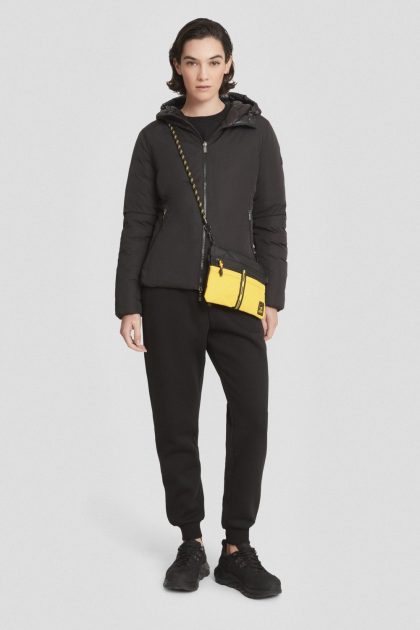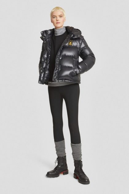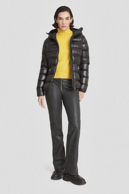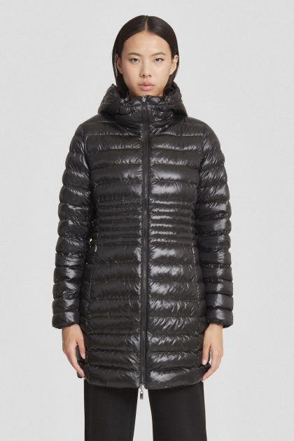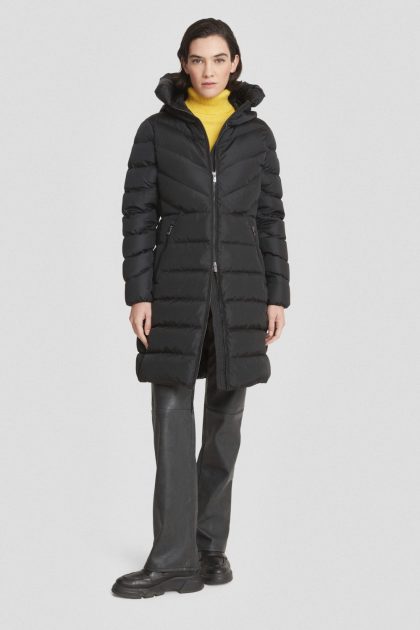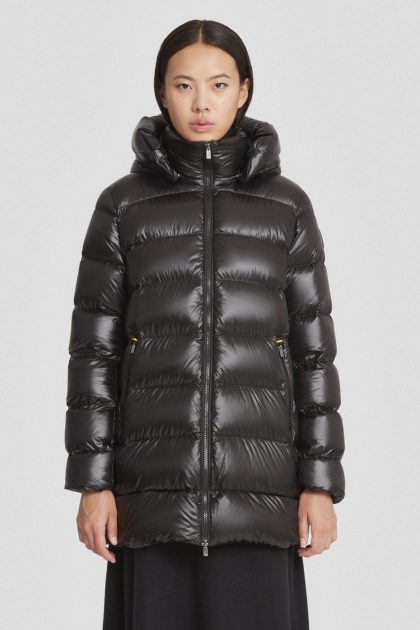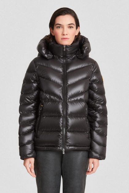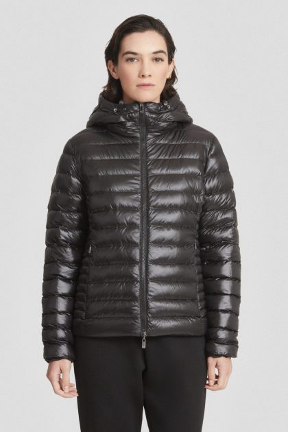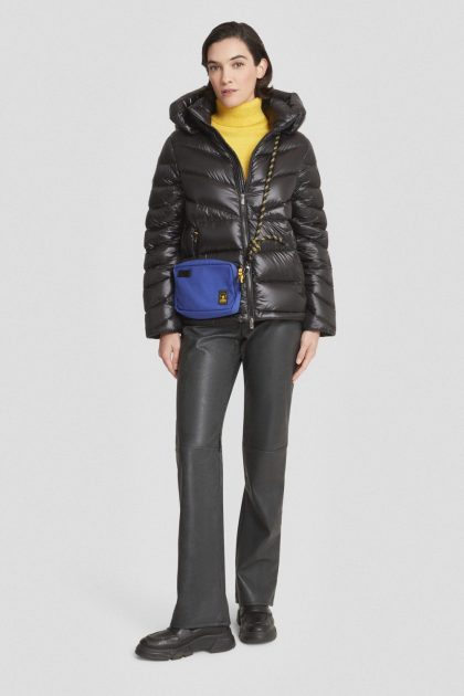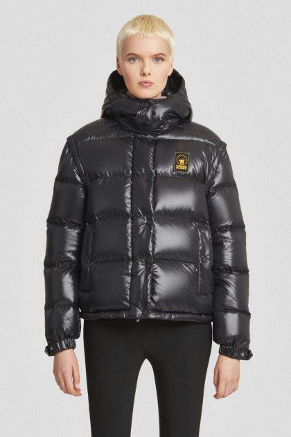 Piumino trapuntato nero con cappuccio e maniche staccabili