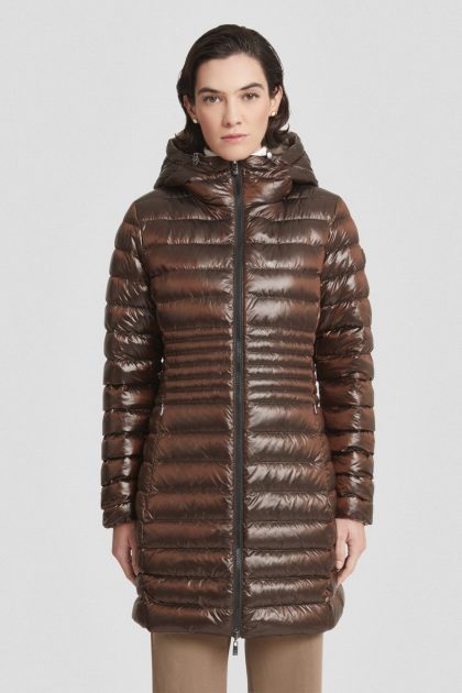Piumino medio-lungo marrone con cappuccio staccabile