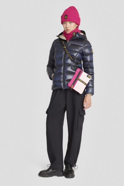 Piumino blu con cappuccio