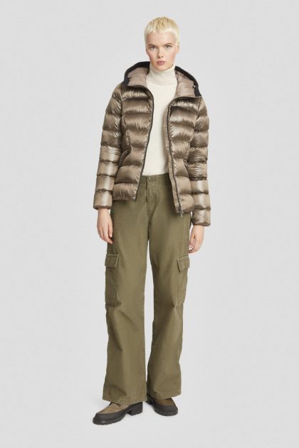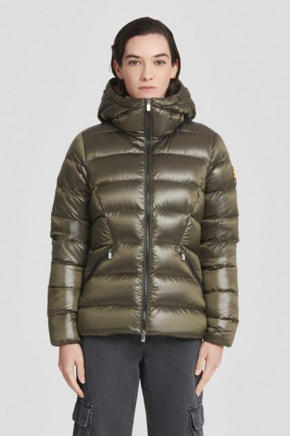 Piumino verde militare con cappuccio