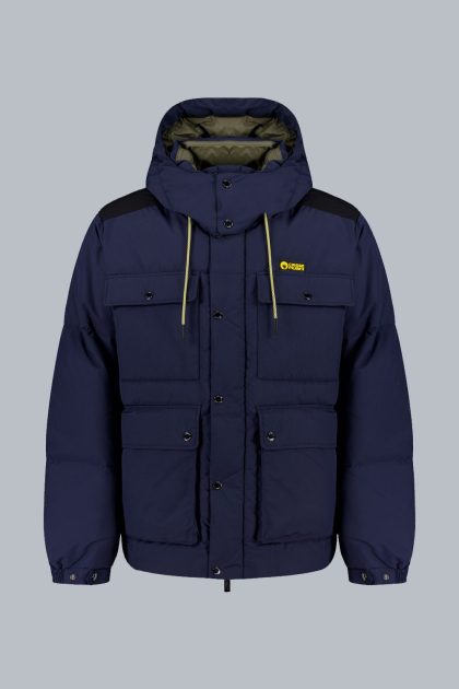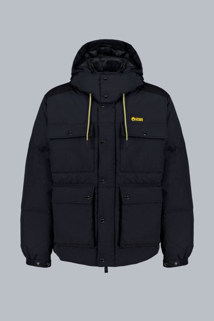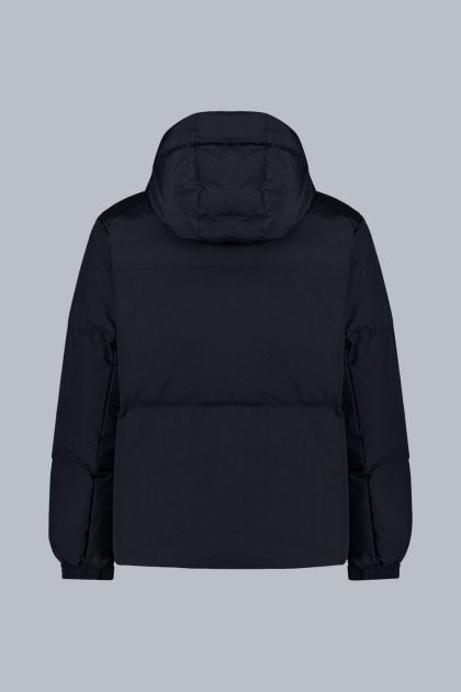 ALASKA – PIUMINO UNISEX NERO 4 TASCHE CON CAPPUCCIO STACCABILE 100% RICICLATO