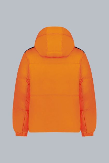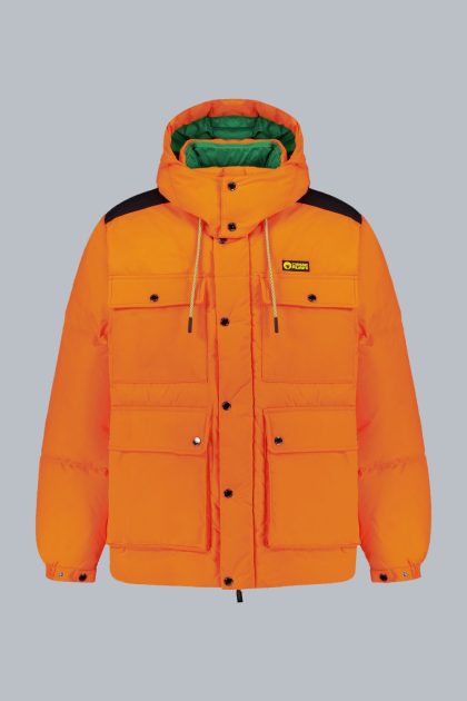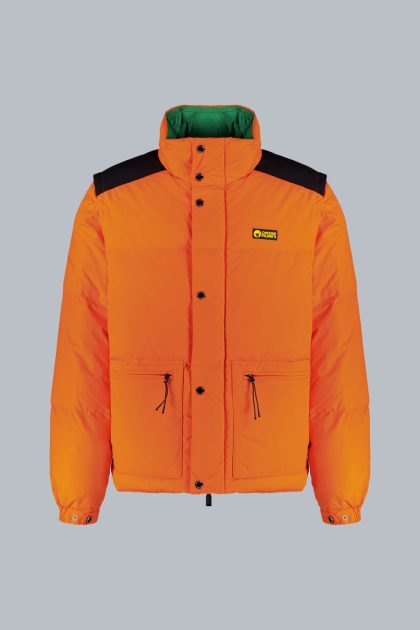 ALASKA – PIUMINO UNISEX ARANCIONE 4 TASCHE CON CAPPUCCIO STACCABILE 100% RICICLATO
