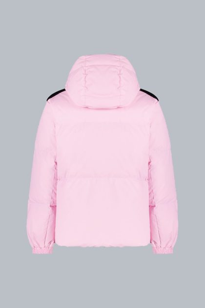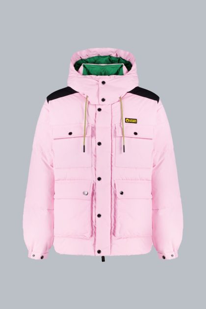 ALASKA – PIUMINO UNISEX ROSA 4 TASCHE CON CAPPUCCIO STACCABILE 100% RICICLATO