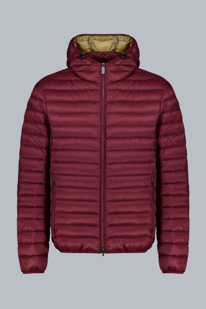 FRANKLIN 2.0 – Piumino 100 grammi rosso con cappuccio in vera piuma 800 fill power