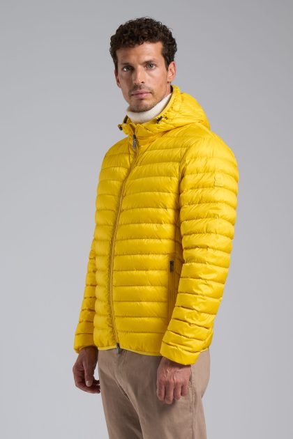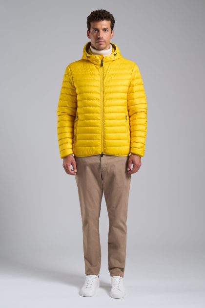 FRANKLIN 2.0 – Piumino 100 grammi giallo con cappuccio in vera piuma 800 fill power