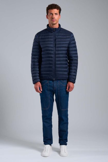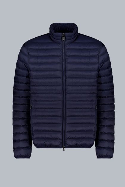 FRANKLIN 2.0 – Piumino 100 grammi blu cobalto con cappuccio in vera piuma 800 fill power