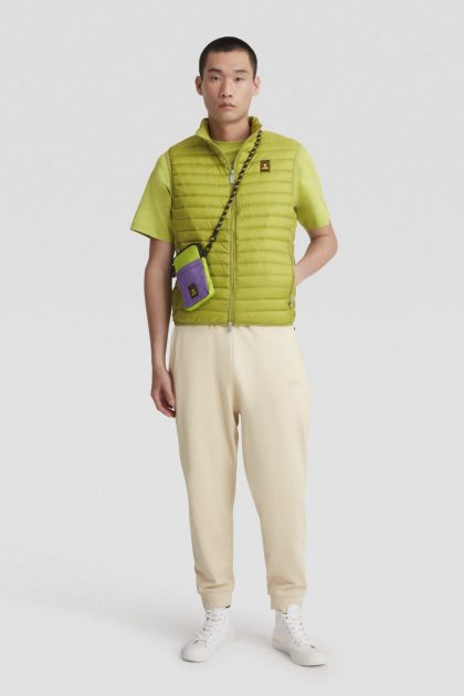 Piumino leggero verde lucido con cappuccio in vera piuma