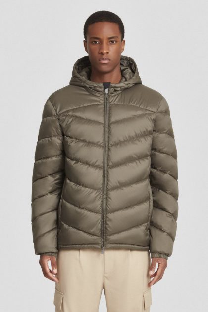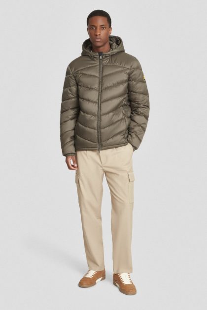 Piumino trapuntato verde militare con cappuccio