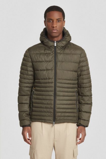 Piumino leggero verde militare con cappuccio